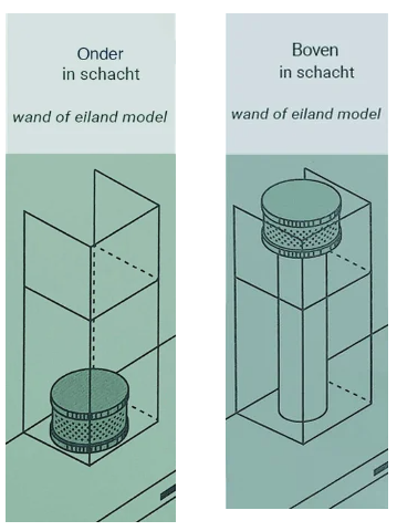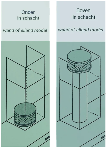 - Schacht/schoorsteen afmetingen: min. 180 x 180 mm (bxd)