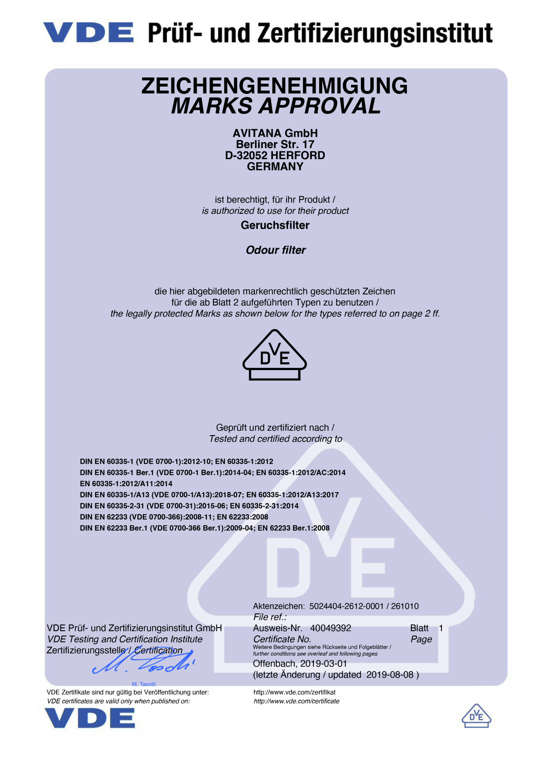 VDE Certificaat Plasmafilters