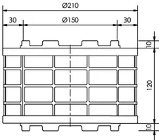 - Afmetingen: buiten diameter 210 mm, hoogte 120 mm
