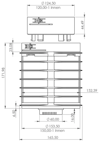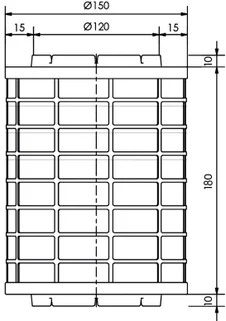 - Afmetingen: buiten diameter 150 mm, hoogte 180 mm
