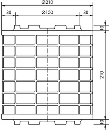 - Afmetingen: buiten diameter 210 mm, hoogte 210 mm